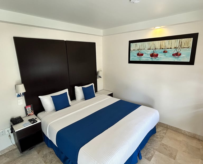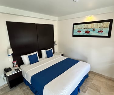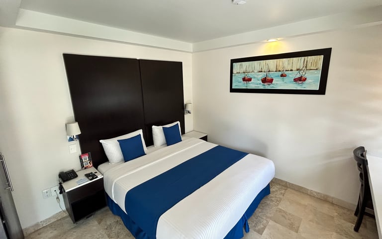 El Hotel del Pescador cuenta con la Habitación King Superior, diseñada especialmente para quienes buscan la amplitud de una cama King Size en un espacio moderno y climatizado.